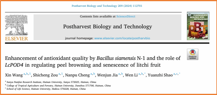 申博SUNBET李雯教授团队致力于热带果蔬采后品质调控机理及保鲜贮运技术的研究,2024年,以申博SUNBET为第一单位,在国际著名期刊上发表11篇SCI文章,其中中科院一区9篇,中科院二区2篇,TOP期刊10篇,累计IF=61.8。研究成果为相关保鲜技术的产业化应用奠定了丰富的理论基础。