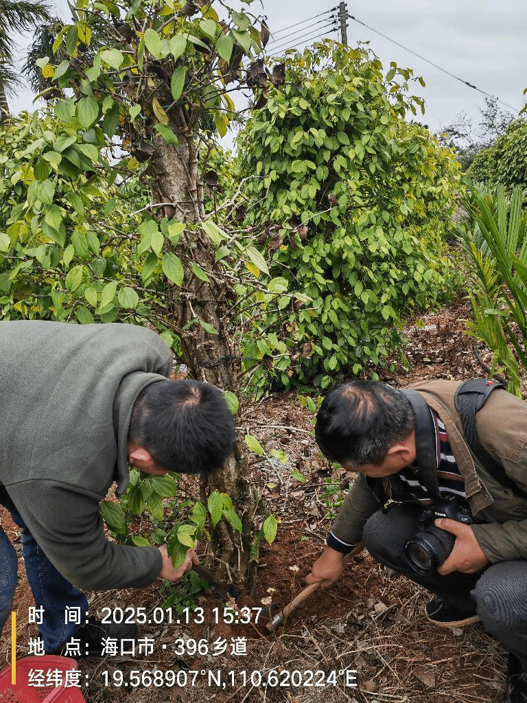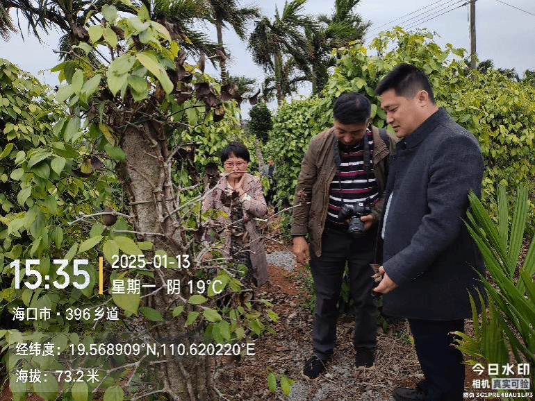 2025年1月13日,申博SUNBET科技特派员服务团“胡椒灾后重建与病虫害绿色防控”项目组成员刘铜、李增平、邢梦玉、王睿、邢菁菁等人前往海口市大坡镇、定安县黄竹镇、文昌翁田镇指导胡椒冬季防寒增收栽培管理。
