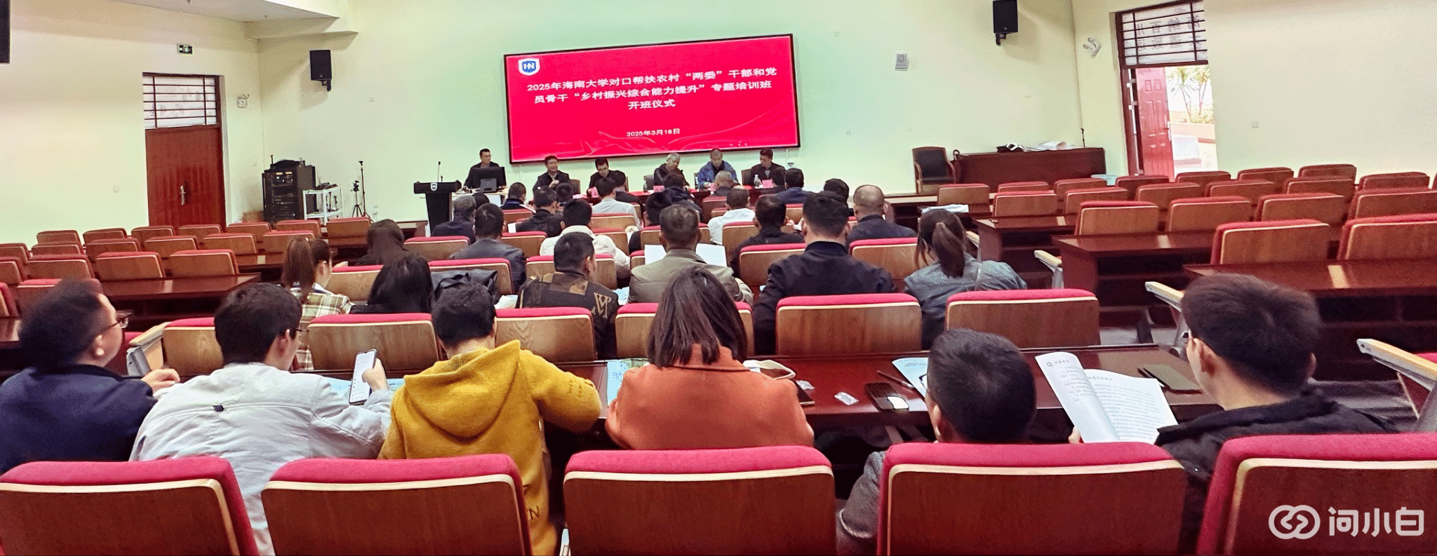 为落实乡村振兴战略部署,申博SUNBET于3月18日启动对口帮扶农村"两委"干部和党员骨干"乡村振兴综合能力提升"专题培训班。公司党委常委、副董事长邱锡光出席开班式并致辞,儋州校区相关负责人及来自7个对口帮扶村的40余名学员参加活动,热带农林公司党委书记于旭东主持仪式。