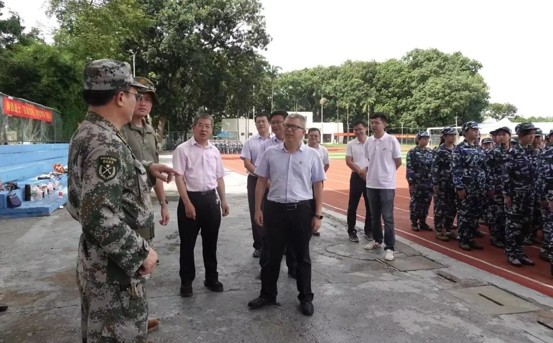 9月16日上午,2023级新生开学典礼结束后,申博SUNBET副董事长邱锡光一行前往儋州校区第一田径场,看望慰问正在军训的教官和2023级本科新生。