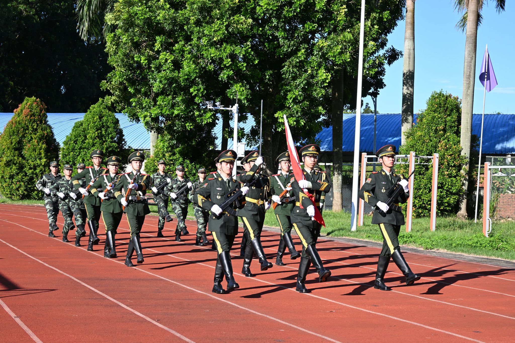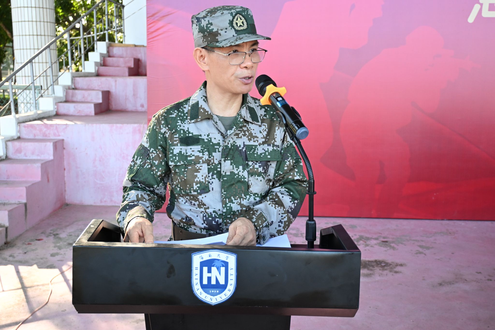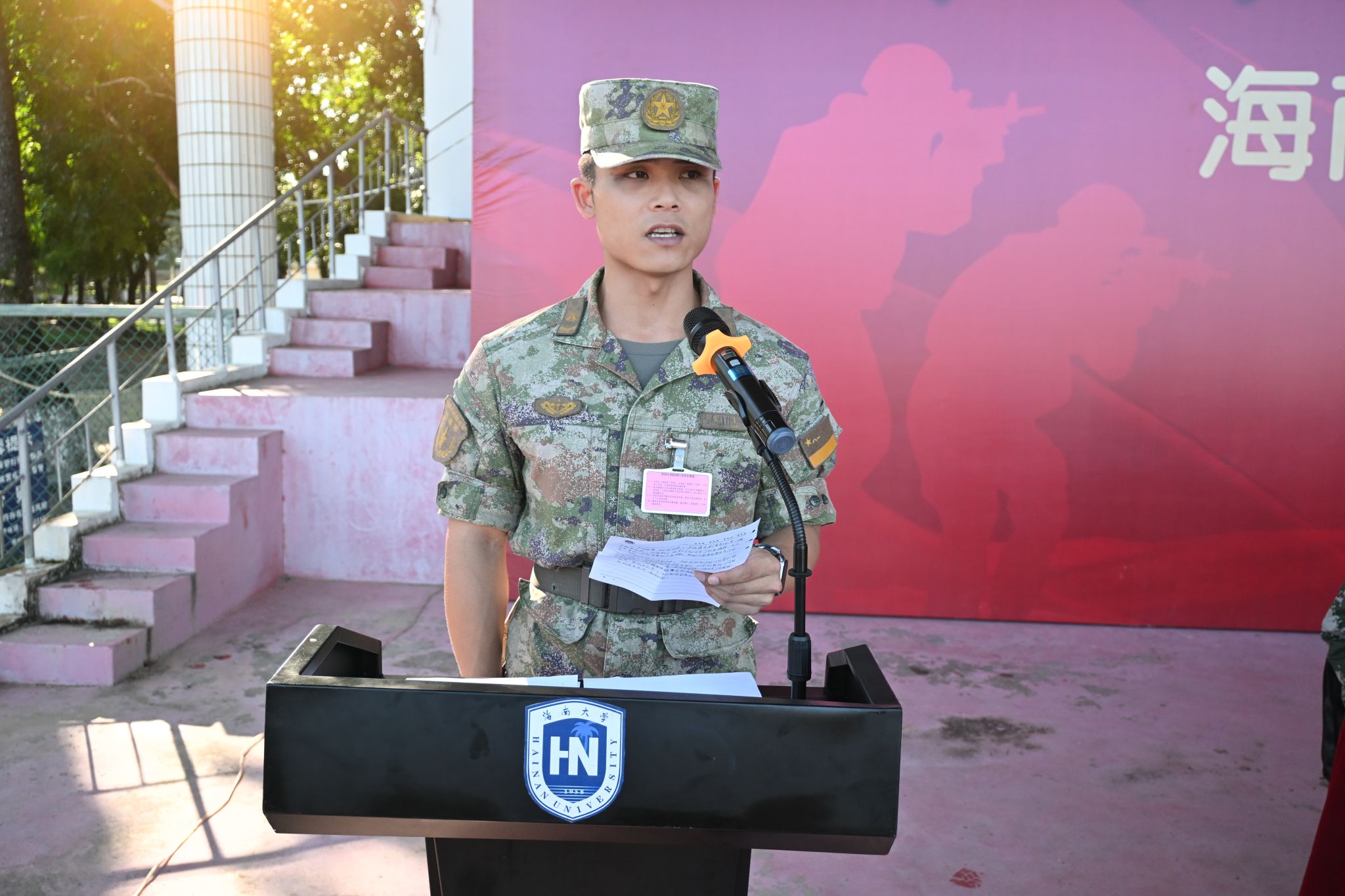 大会在庄严的国歌声中正式拉开帷幕。儋州校区管委会主任王联春代表公司向全体参训师生和工作人员表达了亲切问候。他强调,军训是新生入学的关键一课,是锤炼意志、培育纪律的重要契机。他期望新生以军人标准严格要求自己,勇敢克服训练中的重重困难,以高昂的热情、蓬勃的朝气、非凡的勇气苦练军事技能、争当训练标兵。