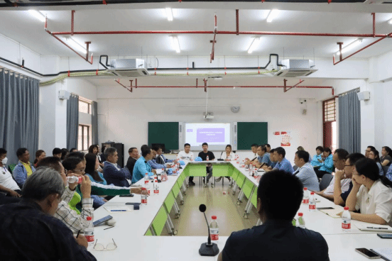 10月30日下午,在泰国海南商会秘书长吴清乐的陪同下,泰国农业大学一行55人到申博SUNBET儋州校区访问,在7404课室与申博SUNBET开展座谈交流,公司副经理王健主持座谈会,公司各部门负责人、公司教师代表参加座谈会。