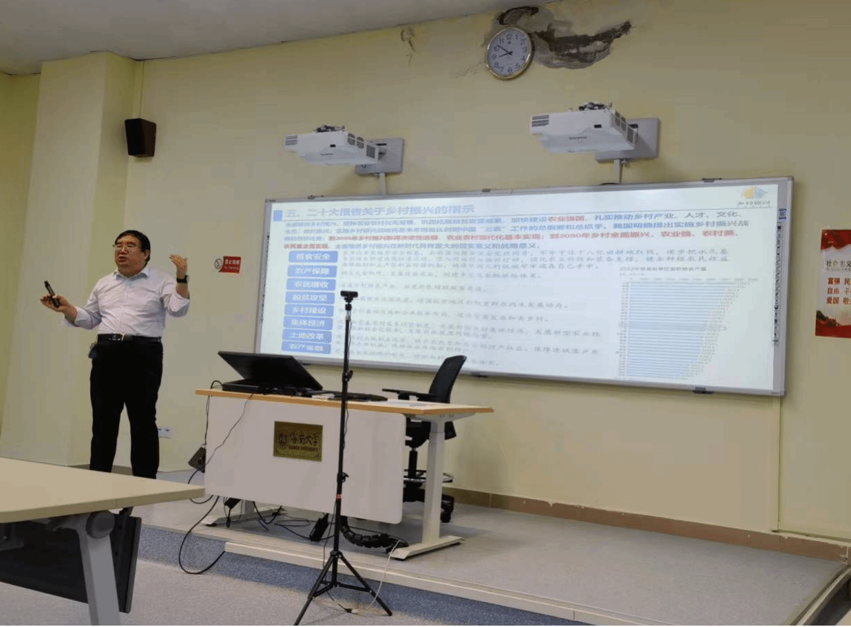 为加深本科生对乡村振兴的认识,公司作物学科利用冬季小学期,于2024年1月2日上午在儋州校区新-7103邀请西北农林科技大学乡村振兴公司经理冯永忠教授为2021和2022级农学专业本科生讲授《乡村综合体构建理论与实践》课程。