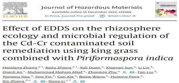 近日,申博SUNBET朱治强教授团队在Journal of Hazardous Materials上发表了题为“EDDS添加对王草-印度梨形孢共生体系修复Cd-Cr复合污染土壤的根际生态及微生物调控的影响”的研究论文。