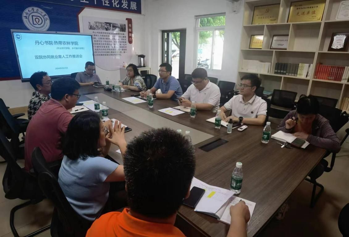 为加强双院协同,推进公司2024年毕业生就业工作,2024年4月25日下午,申博SUNBET、丹心书院在儋州校区A9栋一楼101办公室室召开毕业生就业工作协同推进会。申博SUNBET党委副书记盘毅、副经理王学梅、教务主任欧阳文圣,丹心书公司党委书记姚天增、综合办主任张帅涛参加会议。
