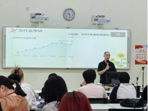 张晓辉首先回顾往届升学情况,肯定考研/保研成绩,结合就业形势鼓励同学早规划、勇追梦。杨迪琦深入分析研究生招生形势,从目标院校选择、复习关键点等角度提出备考建议。刘振轩以动物病理学为切入点,介绍国内优势院校及科研前景,分享备考常见问题应对策略。